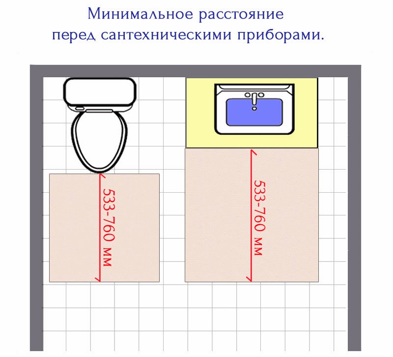 - Минимальное свободное расстояние перед унитазом должно составлять 53-76 см.