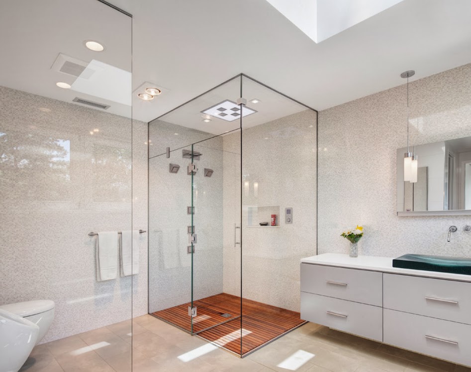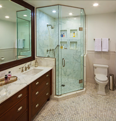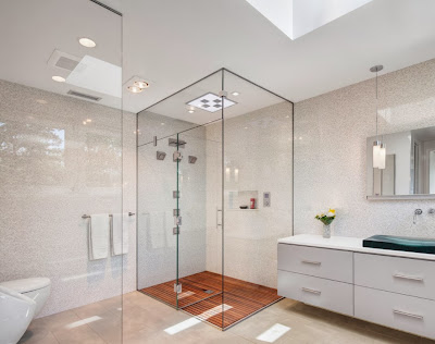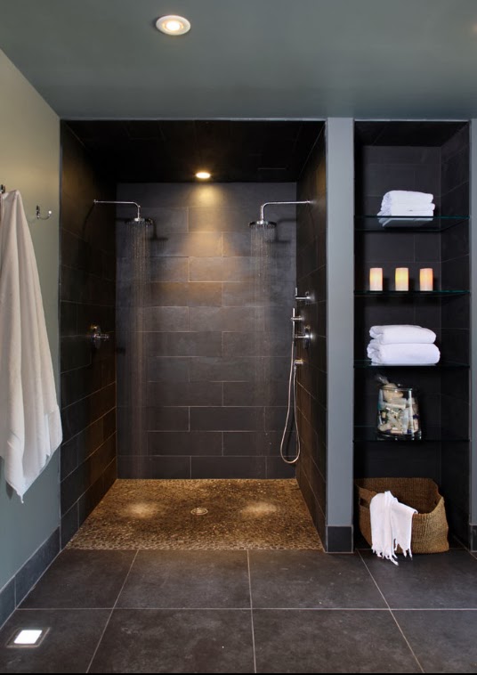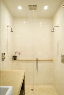 Если душ поставить вместо ванны. И позволить ему заполнить все это пространство - то можно смело организовать душ для двоих.