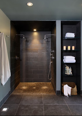Если есть возможность - организуйте для душа мини-комнатку. С отдельным входом, светом...